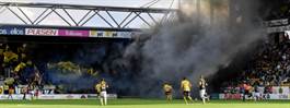 Matchen mellan Elfsborg och AIK fick brytas efter att flaggor i AIK-flaggor fattat eld.