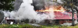En brand totalförstörde en ladugård utanför Sätila mellan Borås och Kungsbacka.